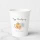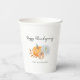 Soirée d'action de grâce tasses de papier personnalisées avec citrouille d'aquarelle et fleurs.