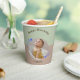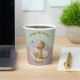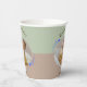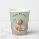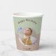 Joyeuse tasse de papier d'anniversaire célébrant le premier anniversaire de la Star de tir. La tasse en papier présente une photo circulaire de votre enfant entourée d'étoiles tournantes bleues et lunaires sur un arrière - plan vert et marron. Les gobelets Joyeux Anniversaire sont neutres du genre et sont ornés de calligraphie de script. Il s'agit d'une tasse minimaliste et moderne et les étoiles apportent une touche simple mais magique. Customisez avec vos propres détails.