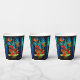Cette tasse en papier avec l'artiste, Leslie Sigal Javorek's audacieux, Art Déco original peinture numérique d'une sculpture en bois sculpté d'Anthuriums et d'Oiseaux de Paris potés assis devant une brillante vitrail bleu et noir fait un beau cadeau pour Noël ou n'importe quand d'autre !.