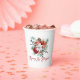 Fleurs d'aquarelle modernes et pommes rouges, tasses en papier de Noël avec typographie rouge personnalisée. Elégante et joyeuse ambiance de vacances.