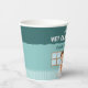 The illustration appears on the cup against a vibrant teal background that keeps the design bright and cheerful. The playful animal clinic scene adds a fun touch to the table and pairs perfectly with other decorations from the veterinarian birthday party collection.