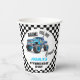 Boys Blue Monster Truck Birthday Paper Cups Monster camion thème d'anniversaire tasses de papier pour garçon avec un camion bleu, drapeaux de course et divers textes en noir et bleu fluorescent texte. Peut être utilisé pour n'importe quel âge.