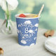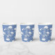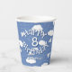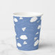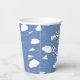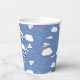 These easy-to-personlize paper airplanes themed paper cups for a boy's or girl's birthday party feature various illustrated folded white paper airplanes with whimsical curvy dashed-line flight trails amongst puffy white clouds on a customizable blue background - by katz_d_zynes