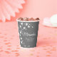 Jolie et moderne conception de tasse de douche nuptiale avec un spray de fleurs blanches et blanc personnalisable texte sur arrière - plan gris moyen