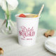 Diseño con Frase "Bride Squad", sencilla y elegante, cita para Pines con tipografía moderna brillante de color rosa en un estilo moderno. El nombre se puede personalizar fácilmente con el Nombre de la Novia, Un recuerdo muy lindo para un momento muy especial para cada mujer. No lo piense y adquiera las suya ahora.