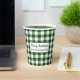 Les bisons verts et blancs contrôlent les tasses de papier de Noël avec un rectangle blanc au centre qui dit "Joyeux Noël" dans une police de caractères vert foncé avec votre nom en dessous dans une police sans serif moderne. Parfait pour un séjour de vacances. Personnalisez-le avec votre nom et votre texte dans la barre latérale. Pour voir le Motif Plaid vert et blanc de conception En vichy sur la coordination des approvisionnements de fête, cliquez sur le lien Collection Arts Rocklawn. numériquement créé une image. Copyright ©Claire E. Skinner. Tous droits réservés.