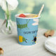Ajoutez votre propre texte pour créer des fournitures personnalisées pour votre fête d'anniversaire ou d'autres événements spéciaux sur le thème des insectes ou des insectes. Ces tasses en papier présentent des illustrations de style rétro de bogues en vert, blanc, jaune, rouge et noir contre un arrière - plan bleu clair. Les graphiques comprennent des coléoptères, une libellule, une cigale, un papillon de nuit et une sauterelle. Votre message personnalisé apparaît dans le centre.