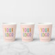 Easily personalize our 8 ounce paper cups with your business logo and custom text. These FDA approved paper cups are for cold and hot drinks. The dimensions for the 8 oz cups are 3.75 inch x 3 inch. Available with or without lids. Also available in 12 oz size. Designed in peach and other colors (all colors are customizable). Sold in sets of 8. Low minimum order quantity and no setup fee. Printed in the U.S.A.