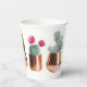 Gobelets En Papier Cactus et succulents dans des pots d'or Roses