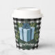 Sirotez vos boissons de Noël préférées avec un ensemble festif de tasses de papier cadeau de Noël Buffalo Plaid. Le design de la tasse en papier présente un cadeau de Noël enveloppé, orné de verdure de vacances contre un arrière - plan en vichy. Autres cadeaux et objets de vacances disponibles avec ce design aussi.