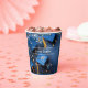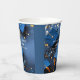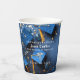 Élégants gobelets en papier avec Caducée, bonnets de diplômé / Caps de promo bleus avec glands dorés, pour le diplôme de votre étudiant en médecine. Fond joli en bleu marine avec confettis dorés et bonnet de diplômé bleu. Ajoutez votre nom, université et année de diplôme.