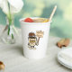 une tasse à café humoristique hilarante avec des yeux endormis rappelant à tout le monde que le café est le premier
