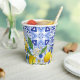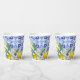 Ce gobelet en papier aquarelle sur le thème des citrons et du bord de mer comporte un motif de carreaux méditerranéens en bleu et blanc. Le bleu poussiéreux, le jaune, le bleu marine et le blanc sont une palette de couleurs parfaite pour une décoration de fête de mariage élégante et formelle.