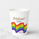 Ces tasses à papier à thème PRIDE arborent le drapeau LGBTQ. Au-dessus du drapeau, on peut lire "Célébrez !" et en-dessous, il y a une zone pour le texte personnalisé.