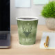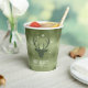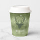 Cette tasse en papier présente une silhouette de bois de cerf et des flocons de neige en vert foncé sur un arrière - plan texturé, vert mousse. Un texte optionnel "Joyeux Fêtes" et un modèle ont été fournis pour ajouter votre nom et/ou un autre texte. Faites une recherche ID861 à ID864 pour voir d'autres options de couleurs et d'autres produits dans cet ensemble moderne de design de Noël.