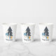 Un mignon chat blanc en chandail bleu buvant une tasse de café alors qu'il décorait le sapin de Noël avec des ornements entourés de cadeaux de Noël colorés. Joyeux texte Catmas dans une police d'écriture amusante peut être customisé avec vos propres mots, cliquez sur le bouton Personnaliser. Un thème amusant pour quelqu'un qui aime les chats, la saison des fêtes de Noël, donner et recevoir des cadeaux, les ornements de Noël, la joie et la joie.
