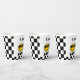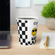 Checkerboard One Happy Dude 1st Birthday Paper Cups Simple one happy dude 1st anniversaire paper cup for a baby boy with a jaune face and black glasses, retro style text and black checkerboard motif.