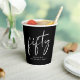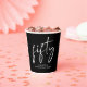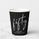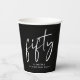 Décor de fête du 50e anniversaire amusant tasses en papier noir qui présentent "cinquante" mis en valeur dans un script blanc moderne chic.