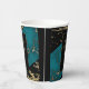 Une tasse de papier de fête d'anniversaire moderne, élégant et glamour Black et brillante feuille d'or peint texture marbre avec arrière - plan en pierre de marbre cyan. Personnalisez et ajoutez les détails de votre fête. Faites de votre anniversaire un événement extraordinaire !