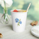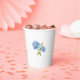 Des tasses en papier d'hydrangée bleue chic et élégantes présentent un beau design floral ainsi qu'une zone de texte optionnelle à l'arrière.