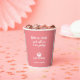 Une tasse en papier élégante et ludique avec un design moderne et l'inscription charmante, "Apportez-moi un café et dites-moi que je suis jolie." Cette tasse est facilement personnalisable avec un nom, une marque ou des informations supplémentaires, ce qui en fait un choix idéal pour les fêtes ou les cafés-magasins visant à impressionner leur clientèle avec une touche personnalisée.