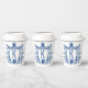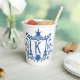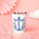 Ces tasses de monogramme de pagode chic sont parfaites pour divertir et faire un excellent cadeau d'hôtesse. Le design de la pagode et le monogramme sont en bleu marine sur blanc.