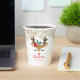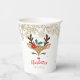 Christmas Reindeer fille tasses de fête d'anniversaire avec le visage de rennes mignon et parties scintillant d'or flocons de neige.