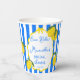 Ciao Bella Dolce vita Citrons bandes bleues douche de mariage italienne gobelets en papier personnalisés modèle, citrons agrumes bandes bleues douche de mariage gobelets en papier monogrammés; été douche de mariage italienne gobelets en papier imprimés, vintage douche de mariage italienne gobelets en papier, bord ondulé gobelets en papier personnalisés funky douche de mariage nom