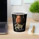 Cinquante texte de script d'effet de style de couleur or sur des tasses de papier noir. Personnalisez ces gobelets avec deux photos de votre fille d'anniversaire à 50 ans, une de chaque côté (pour le passé et le présent plus ajouter votre propre nom ou message. Idéal pour un 50ème anniversaire de fête ou un événement surprise demi-siècle. D'autres années et les articles correspondants sont disponibles. © Design original par Sarah Trett pour www.mylittleeden.com sur Zazzle.