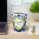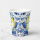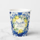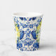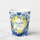 Célébrez la momie à venir avec ces tuiles bleu méditerranéen vintage et des tasses en papier d'inspiration citron. Ces tasses de papier Baby shower Vintage en tuiles bleues et citrons peuvent être customisées avec vos propres détails. Le design comprend un arrière - plan de tuiles bleues vintages avec des oeuvres d'art réalistes au citron.