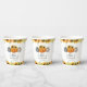 Ce design présente trois citrouilles adorables en orange, noir et blanc plaid, et empreinte de léopard. Des tournesols et des citrouilles encerclent les bords de la tasse en haut et en bas. Le nom de la mère enceinte dans une typographie cursive manuscrite est présenté avec "Baby Sprinkle" et la date.