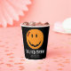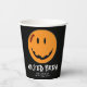 Un visage citrouille habillé pour Halloween avec un sourire citrouille déplaisant et une cicatrice cousue sur le front dans cette tasse en papier Halloween pour enfants. Le texte facultatif se lit comme suit : 'Wicked Brew, one little sip will not kill you'. Cherchez ID224 pour voir d'autres produits avec cette conception.