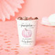 Ces mignonnes tasses en papier de douche pour bébé fille sont décorées de "A Sweet Little Citrouille Is On Her Way", dans un mélange de typographie gris-doux moderne et d'écriture stylée et d'une jolie aquarelle rose pastel d'un citrouille. En dessous, "baby shower" est écrit dans le même script élégant et vous pouvez facilement personnaliser le nom et la date de douche de la mère-à-être dans une typographie moderne et manuscrite.
