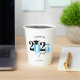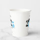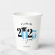 Cette tasse en papier présente une classe moderne bleu clair et noir de 2023 design. Il propose un texte personnalisé pour le nom du diplômé ou le nom de l'école. Le design est accentué par un casquette de graduation noir.