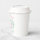 Ces tasses à pickleball ont une image d'art rose et vert de pagaies à pickleball et un verre à martini entouré de branches de laurier avec l'expression "Pickleball Cocktail Club, Please Dink Responbly". Les couleurs utilisées sont le vert et le rose.