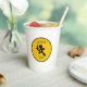 A playful illustration of a stick figure running while carrying a steaming cup of coffee. The text "COFFEE" is at the top and "RUN" at the bottom, indicating the urgency of getting that essential cup of coffee.