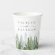 Célébrez avec style ces tasses en papier mariage rustiques et très tendance. Ce design est facile à personnaliser avec votre libellé d'événement spécial et vos invités seront ravis quand ils verront ces fabuleuses tasses.