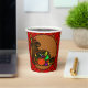 Cette Coupe de Fêtes de Thanksgiving, avec un design campagnard d'arrière - plan vert olive pâle et rouge plaid derrière un vitrail, ressemble à une corne d'osier remplie avec/récolter des fruits et légumes frais, et à deux bordures extérieures (rouge plaid et noir solide). Voir les produits de coordination de l'artiste numérique Leslie Sigal Javorek, chez HoMeArts.