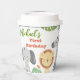 Avec des images plates d'un adorable lionceau, léopard, bébé éléphant, girafe, zèbre et singe, cette tasse Papier de premier anniversaire égaye la fête de votre bébé.