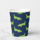 Les gobelets adorables d'anniversaire comportent un mignon motif d'alligators verts souriants sur un arrière - plan bleu foncé.