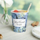 Personnalisez ces jolies coupelles en papier pour mariage aux fleurs d'hortensia bleu pour votre réception de mariage décontractée mais élégante ou votre garden party de douche de mariée estivale. Ces gobelets jetables informels mais élégants présentent une photographie florale en gros plan de pétales de fleurs d'hortensia bleu clair.