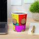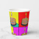 Coupes d'anniversaire avec un design coloré de gâteau Pop Art.
