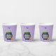 Boo ! Ajoutez une touche de plaisir à votre fête en laissant les invités boire à partir de ces tasses de baby shower éffrayant en chaudron qui correspondent à notre collection de baby showers Halloween "A Baby is Brewing". Le design se compose d'un ciel de nuit violet avec un chaudron bouillonnant, des chauves-souris, une citrouille et un crâne.
