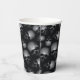 La tasse de papier de fête d'Halloween est montrée avec une impression crâne éffrayante. Customisez cet objet ou achetez tel quel.