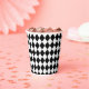 La tasse en papier de la fête d'Halloween est montrée avec un tirage en diamant arlequin. Couleur Noir/Blanc Customiser cet article ou acheter tel quel. Image stock vecteezy.com