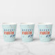 Joyeux 4 juillet ! Célébrez votre fête d'indépendance avec ces tasses en papier avec des feux d'artifice stylisés et une police de script de brosse moderne sur un arrière - plan sunburst bleu clair