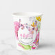 Ces tasses en papier pour baby showers sont décorées d'une aquarelle et de papillons dans les tons rose, pêche, orange et lavande. Les mots "papillons et berceuses" sont placés dans la typographie à la mode. Utilisez les champs modèle pour ajouter votre texte personnalisé. Un choix mignon de coupes jetables à thème papillon pour un baby shower. Pour voir le thème du baby shower correspondant, visitez www.zazzle.com/dotellabelle Art unique et design de Victoria Grigaliunas de Do Tell A Belle.