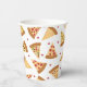 Des tranches de pizza de style rétro avec toutes les options de garnissage et de petits coeurs rouges sur des tasses de papier arrière - plan blanc.