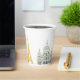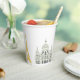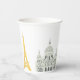 Des tasses de fête avec des monuments célèbres de Paris. La Tour Eiffel, le Sacré Coeur, l'Arc de Triomphe et Notre Dame. Coupe blanche avec grand art représentant ces structures emblématiques.
