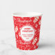 Voici des tasses en papier brillantes et colorées qui fonctionneraient bien pour un dîner de vacances en entreprise ou en famille. Il présente votre texte personnalisé en rouge sur un cercle blanc au milieu. Le cercle de texte est encadré d'un mignon motif rétro rouge et blanc qui répète le texte "Joyeux Noël". Faites-le dire comme vous voulez dans les trois champs de texte personnalisables. Et assurez-vous de voir les produits correspondants, y compris les plaques en papier, dans notre magasin.